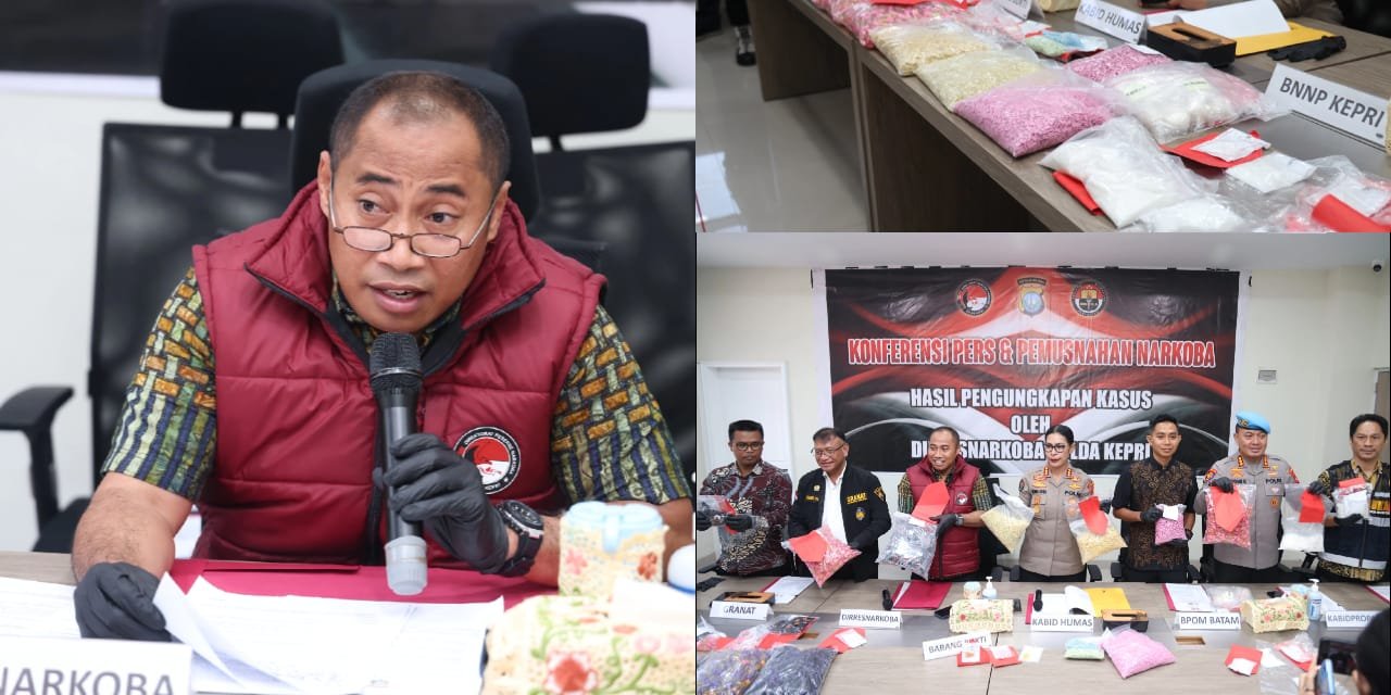 “Dari puluhan kasus tersebut, kepolisian berhasil menyita barang bukti keseluruhan yaitu Sabu (1.732,25 Gram), Ekstasi (18.403 Butir), Etomidate (2.568 Pcs), dan Happy Water (162,36 Gram)”, jelas Kabidhumas Polda Kepri Kombes Pol. Dr. Nona Pricillia Ohei, S.I.K., S.H., M.H.
