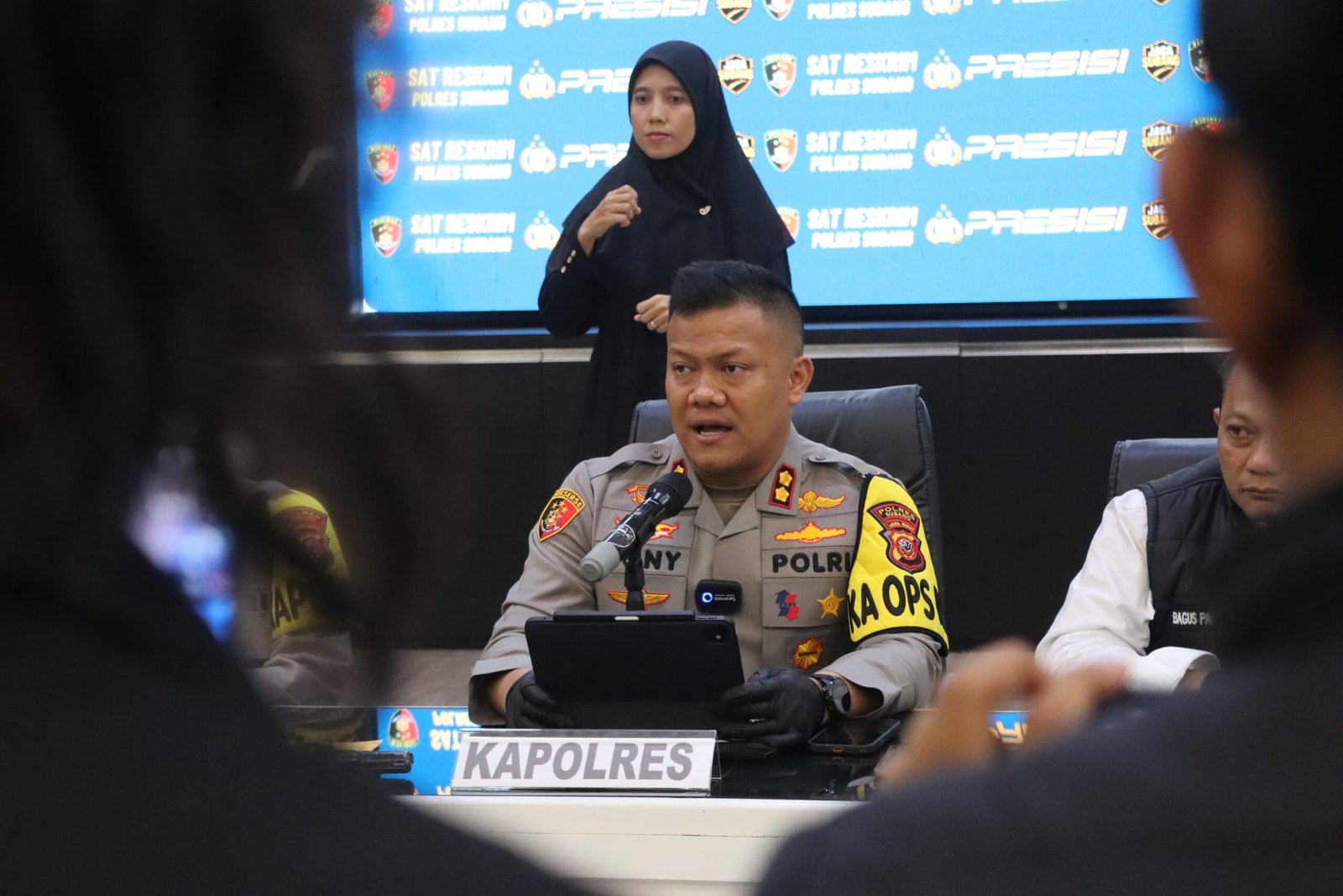 Konferensi pers dipimpin langsung oleh Kapolres Subang AKBP DONY EKO WICAKSONO, S.H., S.I.K., M.H., Ph.D., didampingi Kapolsek Jalancagak, Kasat Reskrim Polres Subang, Kasi Humas, Kasi Propam, serta personel Polres Subang.